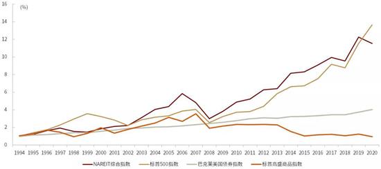 资料来源:NAREIT,中金公司研究部(1994年-2020年)