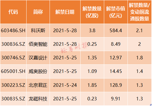原标题:7倍牛股迎巨量解禁,股价跌了4%!本周这些股也将大比例解禁(名单)