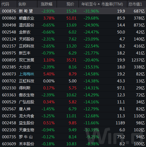 随着猪肉价格走下巅峰,猪肉股也随之下跌。