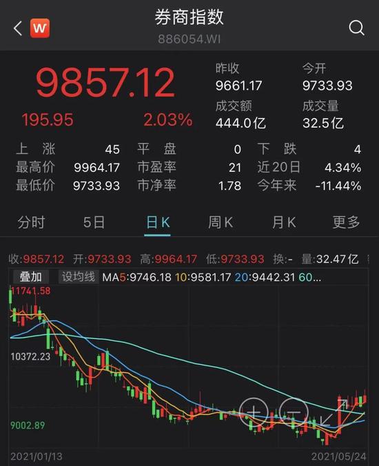 本轮券商行情启动与5月14日,当日券商指数暴涨7.36%,个股全部飘红,之后一周强势横盘。