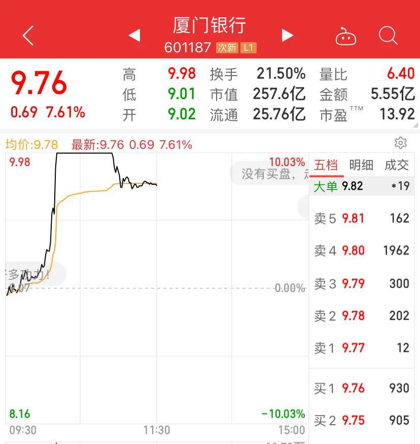 银行股当中,厦门银行也一度涨停,招商银行大涨超4%,平安银行也涨超3%。