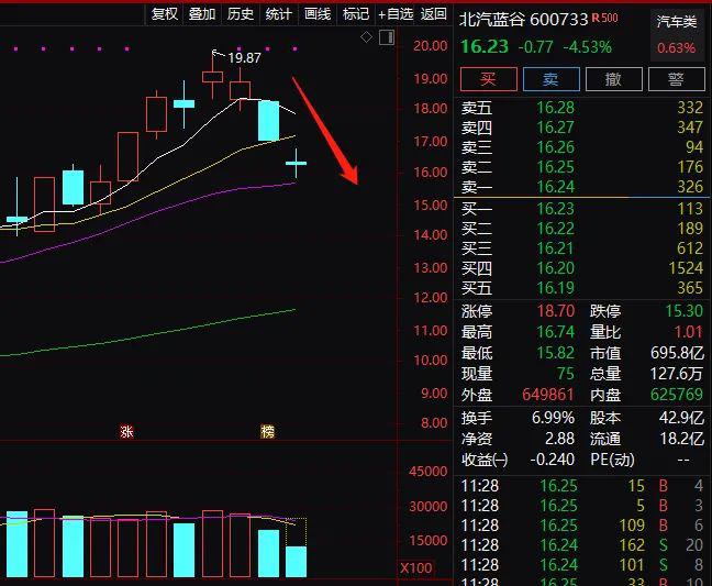 昨日华为重申不造车后,北汽蓝谷、长安汽车股价重挫跌停,今日上午这两股再度暴跌,都下跌超4%。