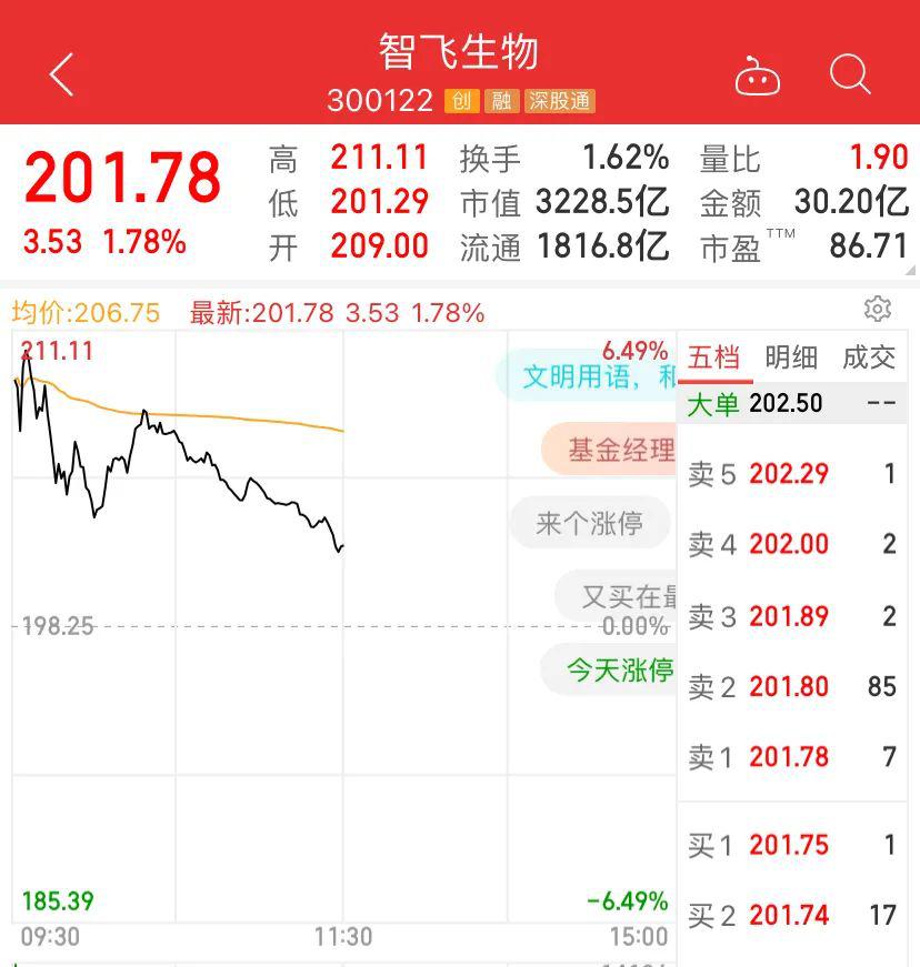 A股智飞生物、复星医药、康希诺等也明显是高开低走。