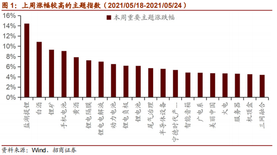 上周,A股涨幅较高的产业指数为:盐湖提锂、白酒、锂矿等。