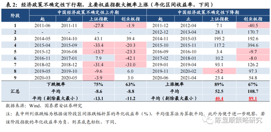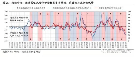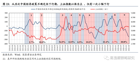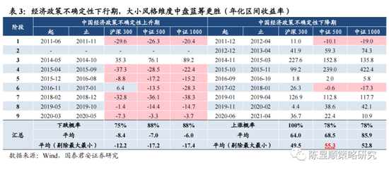 从复盘结果来看,国君策略风险评价指数下行期下的市场表现与结构特征与中国经济政策不确定性指数基本一致。