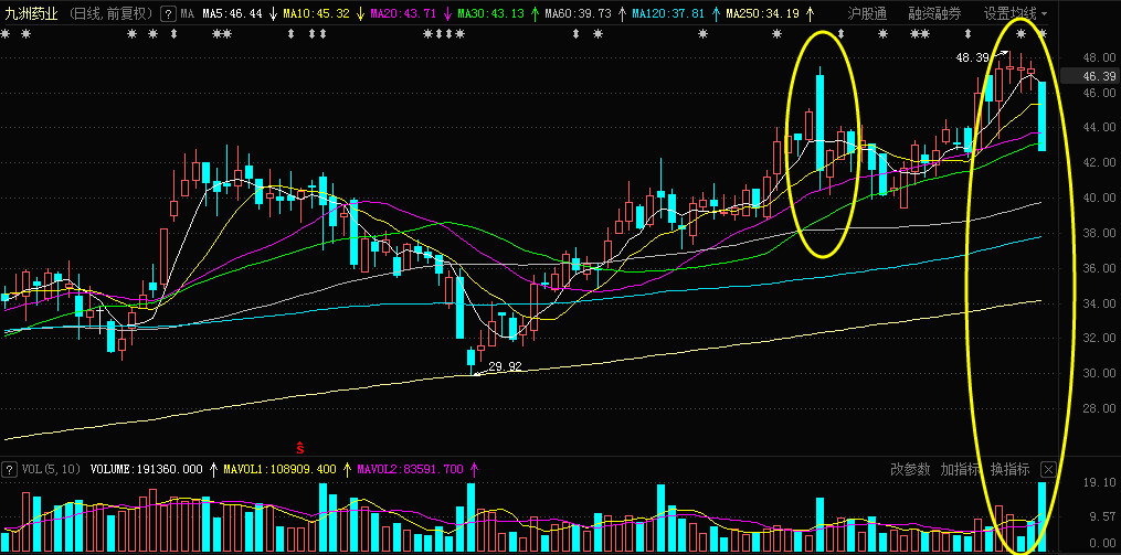 不过,今日九洲药业的放量跌停,其实在本周创出历史新高后已经出现了回调的先兆:5月25、26、27日3天,日K线图均收出阳十字星,但是一星比一星低,即将变盘的迹象非常明显。今日的跌停,九洲药业一举跌破5、10、20、30日4根中短期均线,这把“断头铡刀”带来的压力相当可观。