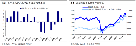 人民币升值是基本面结果,有助于缓解原材料进口成本压力。根据国际收支理论,汇率高低取决于一国的进出口,出口取决于外需、两国的相对价格,进口取决于内需,两国的相对价格,即两国相对收入和通胀率决定了汇率,一般来说贸易顺差导致货币升值,贸易逆差则导致货币贬值。2020年初新冠肺炎疫情爆发,国内疫情控制得力,经济活动很快恢复正常,而欧美等发达国家依然遭受疫情肆虐,在这样的背景下我国出口规模快速增长,经常项目余额大幅扩张,人民币汇率开始持续升值,1美元兑人民币汇率从2020年5月的7.13元降至当前的6.39元。参考历史经验,自从05年我国汇率改革以来,人民币开启了长期升值之路,这也和我国经济地位崛起,成为全球仅次于美国的第二大经济体有关。具体到每个年度,我们发现美元兑人民币汇率变动不大,2005年以来每年汇率变动幅度绝对值均值仅为3.8%,对比而言今年以来美元兑人民币汇率已经升值2.13%。今年美欧经济体逐步普及接种新冠疫苗,预计其经济活动也将逐步恢复正常,这样我国经常项目贸易顺差可能收窄,今年人民币升值幅度可能不会很大。升值有利于缓解我国原材料进口成本压力。5月份以来,国务院常务会议接连三次关注大宗商品价格和原材料价格上涨,最近两次国常会更是提出打击囤积居奇等行为,保供稳价,助力小微企业应对成本上升的压力。
