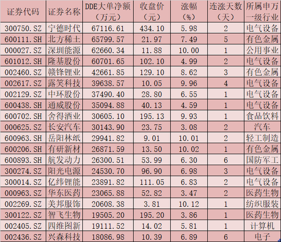 一、周一(5月31日)DDE大单资金净买入TOP20
