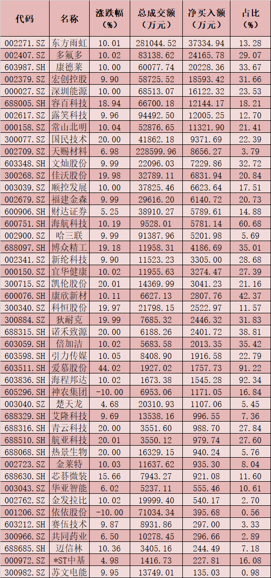 以下是《证券日报》记者对市场资金、北上资金、龙虎榜、两融等主要资金动态进行梳理,以供投资者参考。