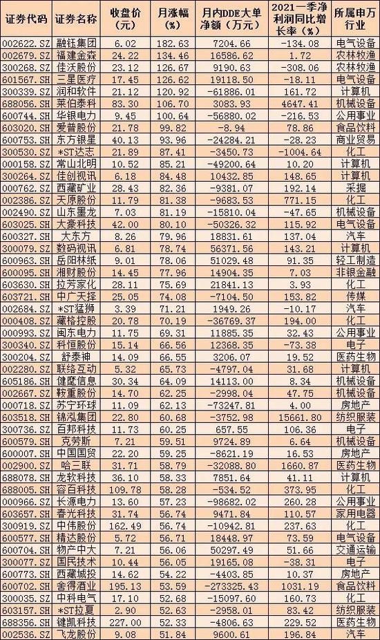 表:5月份TOP50牛股的情况: