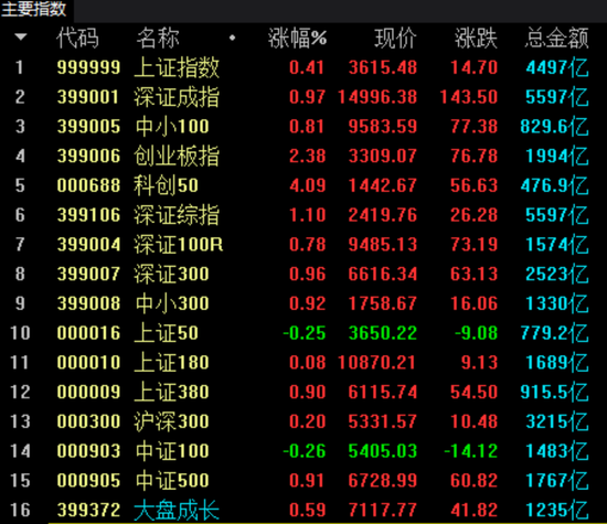 沪深两市再现万亿成交,主要股指震荡走高。创业板指、科创50涨幅分别达到2.38%、4.09%,领涨市场,尽管上证50、中证100等权重股指小幅回落,但反映大市值白马股板块股价表现的大盘成长指数(399372)小幅走高,并刷新2月23日以来的近3个多月收盘最高点位。