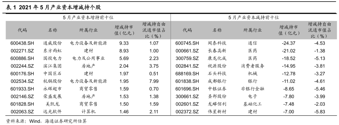 【海通策略】5月产业资本减持额上升(荀玉根、余培仪)