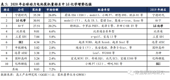 全球动力电池装机量排名第二的LG化学市场份额快速提升,与宁德时代的装机量差距收窄。LG化学将其电池业务(动力电池、储能系统、消费电子小型电池等)独立运作,于2020年12月1日成立LG新能源,LG化学持股70%-80%,并启动LG新能源的IPO程序,计划募资约1185亿元人民币用以扩产和技术研发。按照公司规划,2023年LG新能源产能将扩大至260GWH,原料供应上与SQM签署了电池级碳酸锂和氢氧化锂供货协议,从2021年至2029年合计采购5.5万吨。在2020年全球前十的动力电池供应商中,中国企业占有六席,合计份额为41.1%,但日韩企业的实力不容小觑,韩国三家企业占有率已达31.7%。