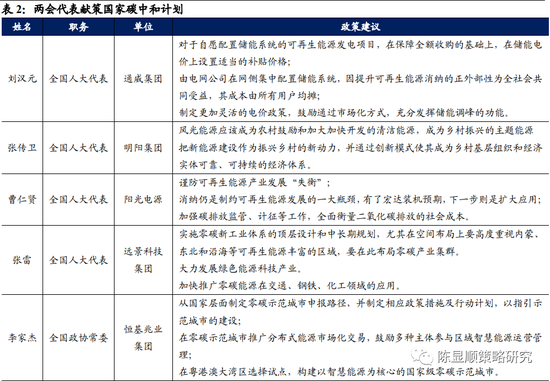 多位两会代表为实现“30·60”双碳目标建言献策。2021年两会期间,与碳达峰、碳中和相关的提案成为市场关注的焦点之一,从多位业内人士代表的政策建议可以看出当前我国新能源行业发展空间巨大,但也面临不少问题。储能成为多位代表关注的问题,储能行业有望进入高速发展期;可再生能源的消纳,有望带动更多领域的新能源利用;风光能源与乡村振兴战略的结合很有潜力;政策顶层设计的完善和零碳示范城市建设有望加速能源革命推进和低碳生活方式的普及。