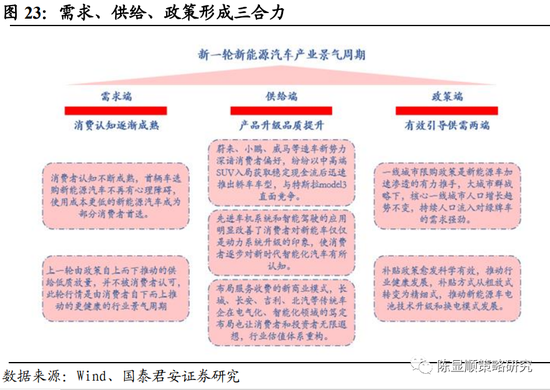 2020年成为新一轮新能源汽车产业景气周期的元年,需求、供给、政策,三方合力共振。1)需求端,消费者认知经过多年培养开始成熟。首辆车选购新能源车不再有心理障碍,与燃油车平价且使用成本更低的新能源车成为部分消费者首选,上一轮由政策自上而下推动的供给低质放量,并不被消费者认可,此轮行情是由消费者自下而上推动的更健康的行业景气周期。2)供给端,供给质量大幅改善。造车新势力深谙国内消费者消费偏好,一改传统新能源车小型低品质的印象,蔚来、小鹏、威马等车企纷纷以中高端SUV入局,获取稳定现金流后迅速推出轿车车型,与特斯拉model3直面竞争,内饰质感的提升只是表象,先进车机系统和智能驾驶的应用明显改善了消费者对新能车仅仅是动力系统升级的印象,逐步让消费者对新时代智能化汽车有所认知,造车新势力也纷纷学习特斯拉弱化硬件,布局服务收费的新商业模式,长城、长安、吉利、北汽等传统车企在电气化、智能化领域的笃定布局也让消费者和投资者无限遐想,行业估值体系重构。3)政策端,有效引导供需两端。一线城市限购政策是新能源车加速渗透的有力推手,大城市群战略下,核心一线城市人口增长趋势不变,更体现为人口质量的提升,持续人口流入对绿牌车的需求强劲;补贴政策愈发科学有效,推动行业健康发展,补贴方式从粗放式转变为精细式,推动新能源车电池技术升级和换电模式发展。