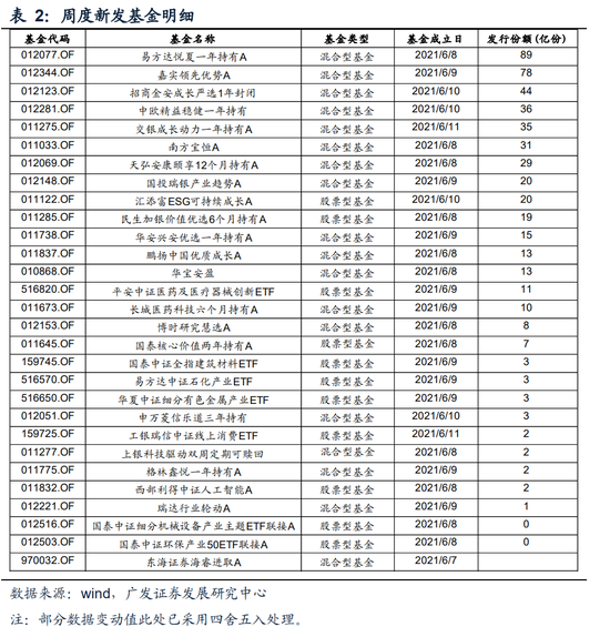 (3)新发基金(股票型+混合型): 上周新发基金规模为613亿元,前一周新发基金规模约261亿元,新发基金规模上升。