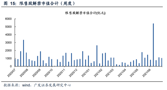 限售股解禁:上周限售股解禁5387亿元,前一周限售股解禁803亿元。预计本周限售股解禁750亿元。