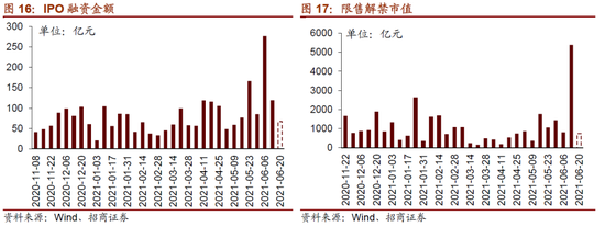 限售解禁市值为5386.9亿元(首发原股东限售股解禁4688.9亿元,首发一般股份解禁451.5亿元,定增股份解禁235.6亿元,其他10.9亿元),较前期大幅上升。未来一周解禁规模下降至750.0亿元(首发原股东限售股解禁397.3亿元,首发一般股份解禁5.5亿元,定增股份解禁343.6亿元,其他3.6亿元)。
