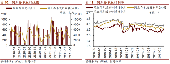 同业存单发行规模下降,发行利率涨跌不一。6月7日-6月11日,同业存单发行620只,较上期增多30只;发行总规模2441.0亿元,较上期减少1042.1亿元;截至6月11日,1个月、3个月和6个月发行利率分别较前期变化8.1bp、2.2bp、-0.8bp至2.50%、2.65%、2.90%。