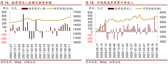 资金供给方面,6月7日-6月11日,新成立偏股类公募基金298.2亿份,较前期增多82.1亿份。股票型ETF较前期净流出,对应净流出48.0亿元。融资余额上升,全周整个市场融资净买入97.5亿元,截止6月11日,A股融资余额为15871.8亿元。陆股通资金本周净流入,当周净流入规模为29.3亿元。