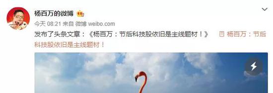 “杨百万”的两个查股微博账号“杨百万财经”“杨百万的微博”,今日除由团队发布逝世公告之外,依然更新节后的投资趋势研判文章,似乎他从未远去。