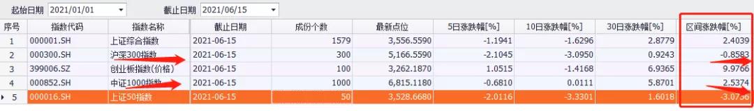 上半年,上证指数涨逾4%,创业板指数更是涨逾11%,沪深300指数和中证1000指数均涨逾2%。6月以来代表大中小市值个股指数出现明显差距,沪深300指数年内跌近1%,上证50指数跌逾3%,中证1000指数上涨2.5%。