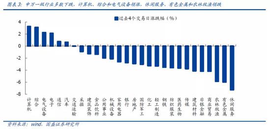 过去4个交易日A股全面下行。截止至周四(6月17日)收盘,沪指收于3525.60点。市场核心指数下行。创业板指、深证成指、上证指数、中小板指、沪深300、上证50分别下跌0.59%、1.67%、1.83%、2.19%、2.57%、2.95%。申万一级行业多数下跌,计算机、综合和电气设备领涨,休闲服务、有色金属和农林牧渔领跌。成交占比方面,成长占比上升,金融、周期和消费占比均相应下降。