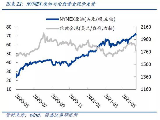 大宗商品方面,截止至周四,国内原油期货上涨1.41%;工农业产品走势分化,工业品上涨2.22%,农业品下跌3.79%;过去4个交易日NYMEX原油上涨1.38%,收于71.06美元/桶,伦敦黄金现价下跌6.6%,收于1773.1美元/盎司。
