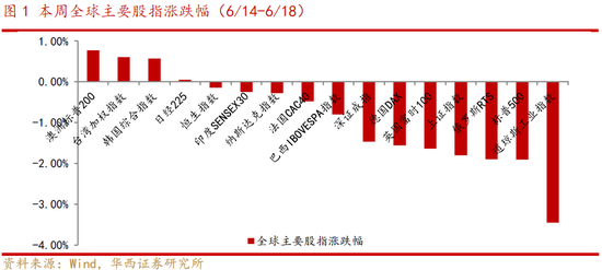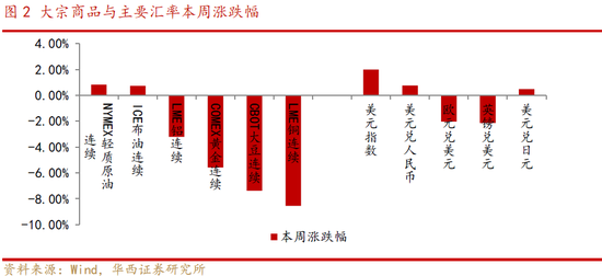 本周全球股指多数下跌,美股纳斯达克指数、标普500、道琼斯工业指数分别下跌0.28%、1.91%、3.45%;A股深证成指、上证指数分别下跌1.47%、1.80%。商品市场降温,LME铜、LME铝分别下跌8.54%、3.21%,COMEX黄金下跌5.57%。汇率方面,美元指数涨破92,单周上涨2%。