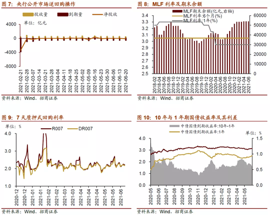 上周(6月14日-6月18日)公开市场净回笼800亿元。为维护银行体系流动性合理充裕,央行开展逆回购400亿元,同期有500亿元央行逆回购到期,同时开展2000亿元MLF操作,完全对冲到期的2000亿元MLF,另外有700亿元国库现金定存到期,未来一周将有400亿元逆回购到期。