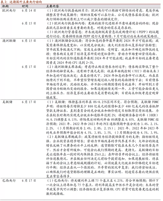上周美联储公布将继续维持基准利率在0%-0.25%区间不变,将超额准备金利率(IOER)从0.1%调整至0.15%,将隔夜逆回购利率由0%调整至0.05%。此外美联储FOMC声明将继续每月增持至少800亿美元的国债和至少400亿美元的住房抵押贷款支持证券,直到委员会的充分就业和物价稳定目标取得实质性进展,并力求在较长时期内实现充分就业和通胀率达到2%。美联储主席鲍威尔表示政策将继续为经济提供强有力的支持,尽管指标继续走强,企业投资在稳步增长,但劳动力市场改善的步伐参差不齐。大部分的快速增长反映了从萧条的水平上的反弹。另外通货膨胀可能在未来几个月继续居高不下,然后才会有所缓和,并可能会比预期的更高,更持久。在即将召开的会议上,经济将继续评估进展情况,并在做出任何决定之前给予提前通知。欧洲央行执委施纳贝尔表示欧洲央行可以根据可持续性的考虑,更逐步地调整其货币政策操作。日本央行将基准利率维持在-0.1%不变,将10年期国债收益率目标维持在0%附近不变。巴西央行将关键利率上调75个基点至4.25%,预计下一次会议上将再加息75个基点。印尼央行将维持7天逆回购利率在3.5%不变。