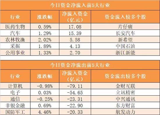 28个申万一级行业中,8个行业实现资金净流入,其中医药生物行业净流入17.08亿元居首。
