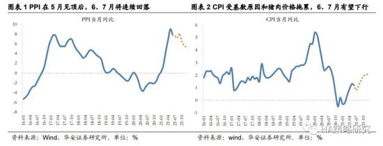 7月价格指数对货币政策的压力将有所缓释,淡化物价可能对总量政策的影响冲击。PPI方面,近期国家密集性出台政策进行保价稳供,如国家物资储备调节中心将在7月初对铜、铝、锌等有色品种进行储备投放,对部分大宗商品的供需缺口将有所改善,除此外政策正在采取积极的措施来抑制市场投机性行为,因此5月9%的PPI将是本年的顶部,后续整体将不断回落,预计6、7月PPI都将进一步回落。CPI方面,目前CPI的位置还相对较低,尽管猪肉收储预案提上日程,恐慌性猪肉抛售行为将有所减少,但收储对供需的传导需要一定时间,因此预计猪价下行趋势有望仍将延续,猪肉对CPI的拖累还需持续一段时间,我们预计6、7月CPI同样将面临回落。总体来看,6、7月价格指数对货币政策的压力都将有所缓释,无需担忧物价将对货币形成遏制。实际上 ,目前价格指数对政策的指示作用有所弱化,核心在于在当前供需异动的特殊时期,物价本身将呈现出不稳定的剧烈变化。