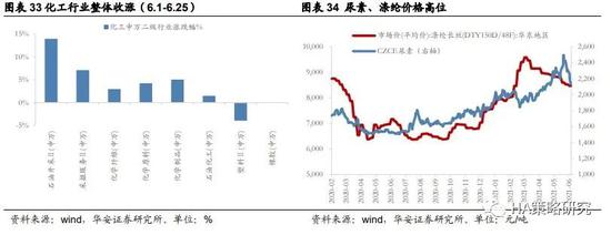 化工,细分板块关注高景气涤纶及化学制品。近期关注到化工景气度有所抬升,尤其是涤纶及化学制品中的化肥板块。其中,6月石油开采收涨13.95%,化学纤维收涨2.07%、化学制品收涨5.04%。涤纶长丝方面,受到海外需求复苏的带动,以及供给紧平衡状态下去库明显,库存量6月同比-0.72%,处于近一年库存低位,将会推动化学纤维板块的高景气。化学制品方面,以尿素、磷铵和钾肥为代表的产品近期涨价明显,尿素批发价达到2900元/吨,各地主流厂家出厂价分别上调20-30元/吨。化肥价格的上涨,主要原因还是在于原料端煤炭的供应紧张和高价格,带来低开工率和挺价的现象。但需要关注的是,后续煤炭价格表现对于农化景气度的影响。估值方面,化工板块整体估值分位数处于后三分之一分位。截止6月25日,申万化工板块的估值分位数位36.7%,较5月小幅变动2.8%,整体估值平稳。