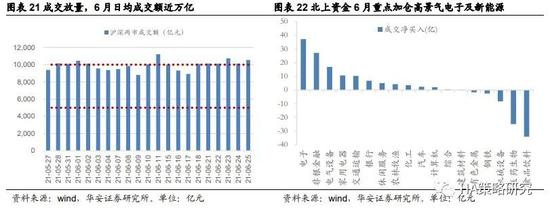 反弹趋势中,市场结构性特征明显,中报期临近,继续助推高景气成长板块。5月以来的反弹行情中,轻指数、重结构的特征逐步强化。同时,随着周期板块边际上涨动能的减弱,叠加流动性充裕,成长板块上位。其中,上证综指6月变动-0.2%,创业板收涨1.2%。从行业来看,主推三条主线中,高景气板块所选行业表现优异,汽车、电子、采掘、电气设备涨幅分别位列申万一级行业2至5位,涨幅分别为9.63%、9.43%、7.7%、7.6%。从北向资金来看,加仓趋势与6月结构性趋势基本一致,重点加仓板块包括电子和新能源,6月北上资金电子成交净买入37.2亿元,电气设备成交净买入16.8亿;个股方面,隆基股份、立讯精密则分别位列净买入前二。预计在流动性充裕,以及市场风险偏好抬升的过程中,成长板块仍将受到支撑。