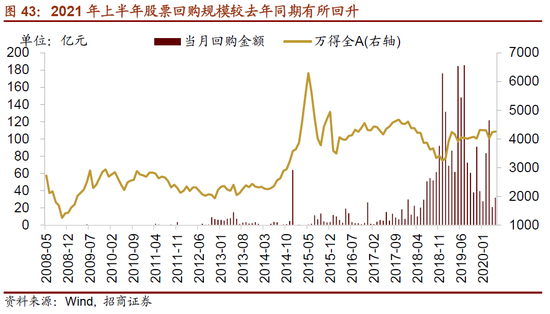 2021年前6个月股票回购规模合计约670亿元,股票回购已逐渐成为A股市场一种相对常态化的上市公司操作,且年初的时候一般回购规模相对较高,预计2021年下半年股票回购规模可能有所下降,保守估计500亿元。