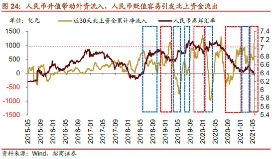 因此概括来说,人民币汇率可能受美联储政策收紧及中美经济增速差异的影响而短期走弱,进而导致北上资金的波动增大,北上资金可能减弱甚至阶段性流出。不过人民币并不存在大幅贬值的基础,且人民币资产对外资的吸引力犹在,不排除外资超预期的可能。