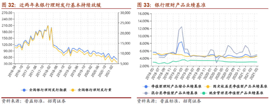 因此,综合银行理财总规模、净值产品规模以及理财发行情况来看,净值型产品规模的扩张可能以存量产品转型或者新的产品承接旧的产品为主。随着资管新规过渡期临近结束,银行理财加快转型,预计理财整体规模扩张有限,甚至不排除小幅下降的可能。
