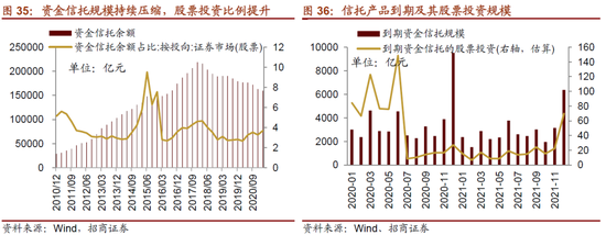 2021年以来,资金信托规模继续下滑。但其中投资股票的比例持续提升。截至2021年3月末,资金信托中投资股票的比例为3.69%,较年初提高0.4%。据此估算,以平均仓位为基础,一季度资金信托规模下降对市场流动性的影响约为-120亿元,则半年对应规模为-240亿元。