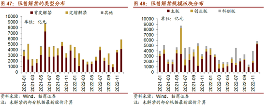 2021年上半年解禁规模约为2.72万亿,约占全年解禁规模的50%。板块分布为:主板1.66万亿元、创业板7476亿元、科创板3121亿元;从解禁类型分布来看,首发解禁1.4万亿、定增解禁7639万亿元、其他解禁5528亿元。下半年解禁规模约2.72万亿元,解禁规模基本与上半年持平,板块分布为:主板1.83万亿、创业板8256亿元、科创板601万亿元;解禁类型分布:首发解禁1.97万亿,定增解禁7357万亿,其他解禁164亿元。从时间上来看,下半年各月解禁规模相对均匀分散。