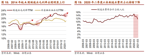疫情后随着全球范围同步的经济刺激计划开启,全球经济复苏使得中国优势制造业的盈利能力进入新一轮上行周期;同时去年二季度以来制造业出口规模持续扩大进一步促进盈利能力改善,费用率持续低位也为净利率提升创造空间。