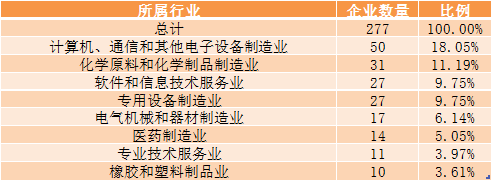 行业方面,则共有8个行业的待审企业数量达到两位数,分别是计算机、通信和其他电子设备制造业50家、化学原料和化学制品制造业31家、软件和信息技术服务业27家、专用设备制造业27家、电气机械和器材制造业17家、医药制造业14家、专业技术服务业11家、橡胶和塑料制品业10家。其中,来自前三大行业的待审企业,占总待审企业的38.99%,占比接近四成。