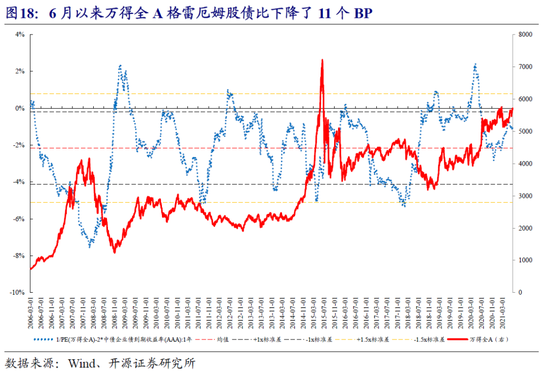 6月A股的股债风险溢价有所下降,而港股和美股有所上升。6月以10年期中债国债到期收益率计算的万得全A风险溢价下降了8个BP,以7天余额宝年化收益率计算则下降了9个BP,但均位于均值上方;以10年期美国国债到期收益率计算的恒生指数风险溢价小幅上行了6个BP;标普500的风险溢价上升了6个BP。