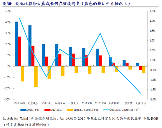 3.2 收益率-ROE的透支程度——大盘成长/创业板指仍在继续透支