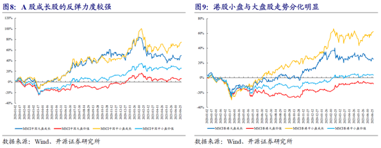 6月A股板块分化明显,通胀交易仍存在分歧;美股与经济复苏相关的板块走弱,成长风格反弹。具体来看,A股的电子、电气设备、计算机、通信等新兴成长板块涨幅排名居前,而大消费板块(食品饮料、农林牧渔、医药)、金融板块(银行、非银、房地产)整体偏弱。此外,周期性行业内涨跌互现:化工、采掘表现较强,而钢铁、有色有所回调,表明投资者对未来通胀走势存在分歧。从概念指数表现来看,涨幅排名靠前的指数集中在半导体相关领域,跌幅较大的集中在金融、医药和食品加工。美股5月表现不佳的信息技术板块和通信设备板块6月明显反弹,而5月表现出色的材料、金融与工业板块则大幅回调。但值得关注的是美国ETF中与干散货运输相关的ETF涨幅居前。6月全球股市整体偏中小盘成长风格。具体到国家来看,除日本各板块之间的分化有所收敛之外,其他几个市场中成长风格指数的涨幅要高于价值风格指数。