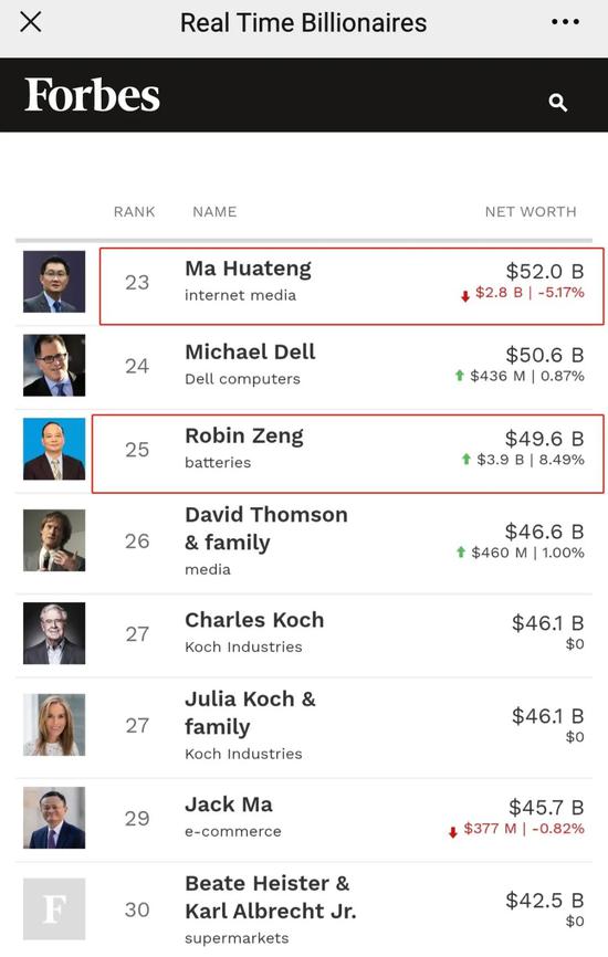 随着宁德时代市值的不断飙涨,公司创始人曾毓群的身家水涨船高。7月8日晚间的福布斯实时富豪榜显示,曾毓群的身家已经达到496亿美元,全球排名已经从昨日的27位升至第25位。