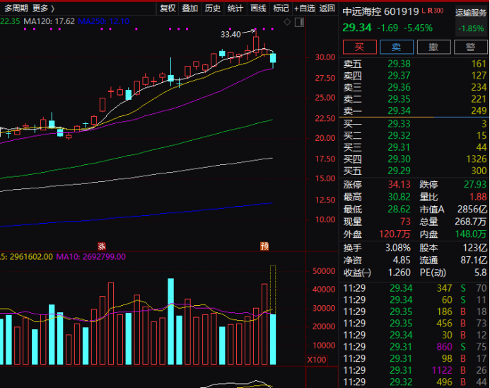 号称“周期之王”的海运龙头股中远海控在披露靓丽的业绩预告后,股价也连续第二个交易日走低。