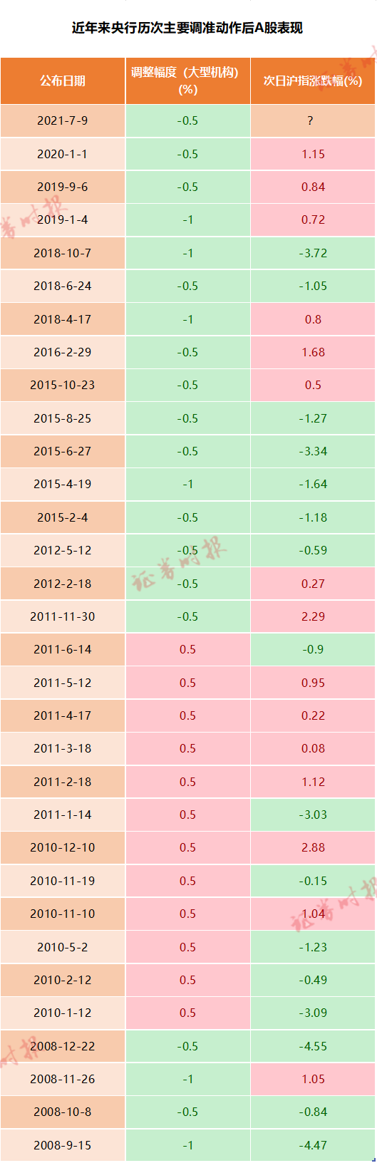 总体而言,从近些年的历史数据上看,不论是降低存款准备金率,还是提高存款准备金率,短期均较难改变A股市场既有走势。