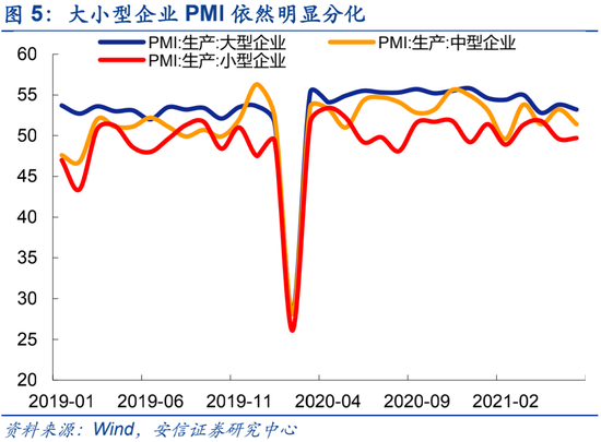 不过当前经济并非高枕无忧,从全球来看,由于我国复苏进程领先全球,近期PMI等领先指标已经显著落后于美国和全球,意味着中国的复苏动能也将率先消退。从结构来看,中国经济主要面临着投资不足、中小企业压力较大、上游对中下游利润挤压和消费不足的问题。