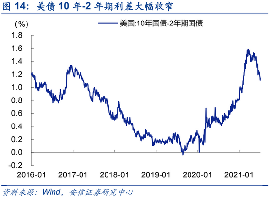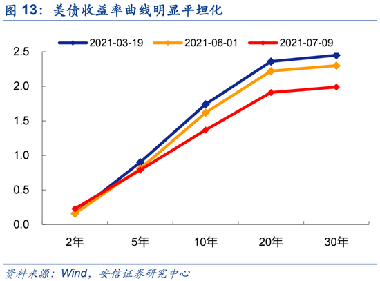 同时,美国长期通胀预期的持续回落和当前极度宽松的流动性继续推动美国10年期国债收益率下行,7月8日收至1.30%的阶段低点。可以看到,收益率曲线平坦化趋势正在进一步显现,美国经济的衰退预期不断上升。这或将标志着全球再通胀交易的终结,成长型/科技股开始跑赢价值型/周期股。对于中国而言,这意味着输入性通胀压力下降,PPI同比见顶确认,增加了货币政策的“灵活性”。
